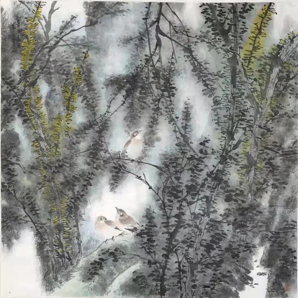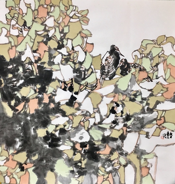 朱白云 鸟鸣 69x69cm