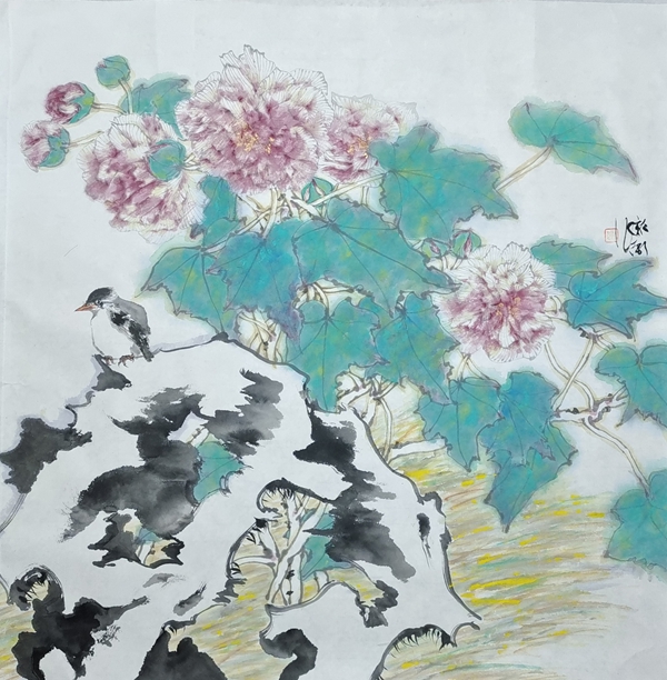 李新卫 芙蓉小鸟 69x69cm