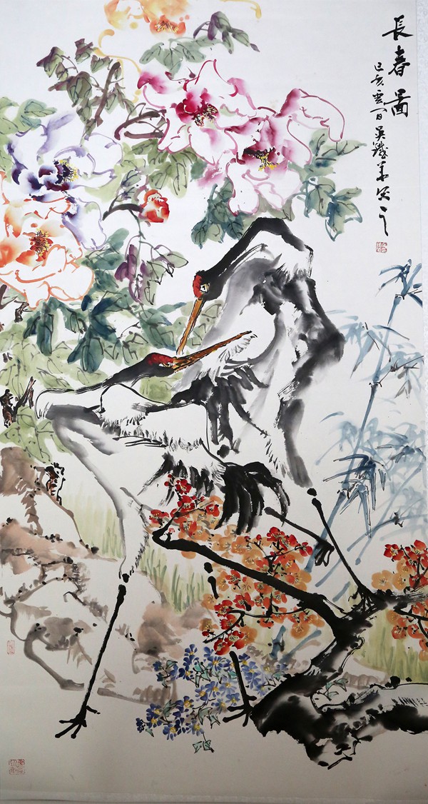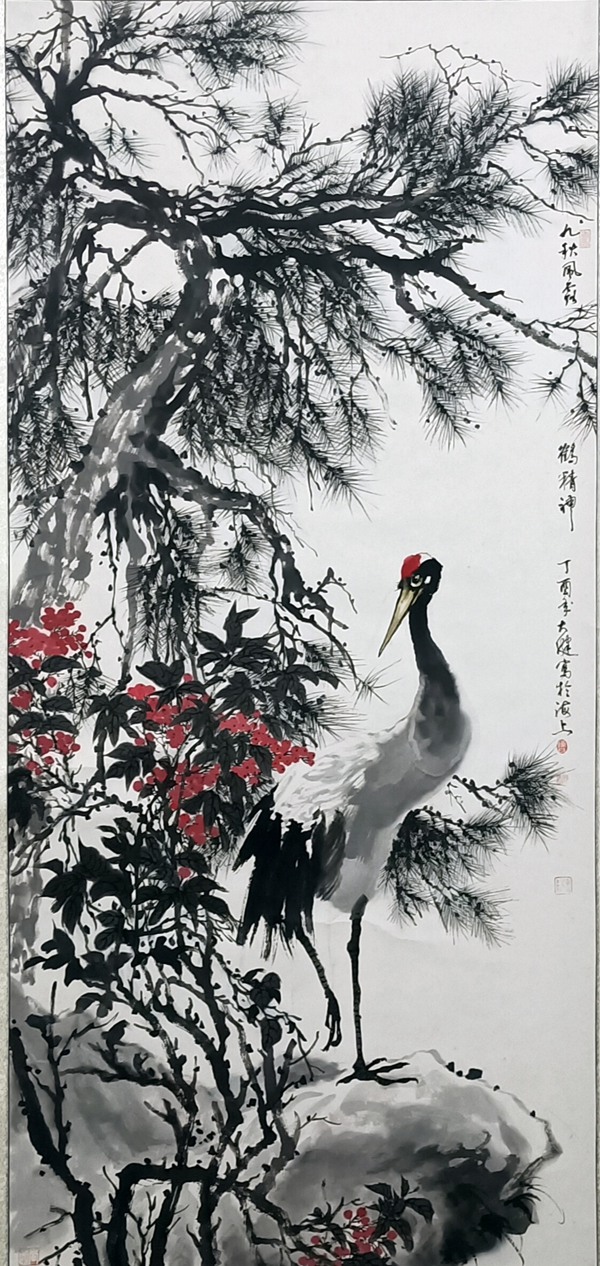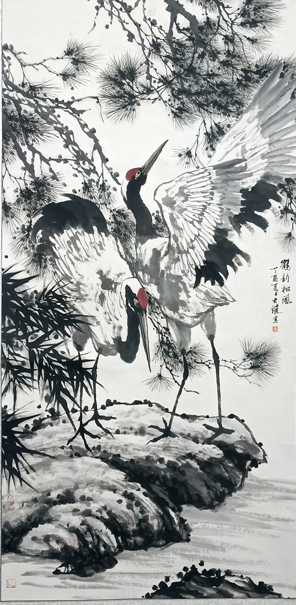 陈大健 鹤韵松风 139x69cm