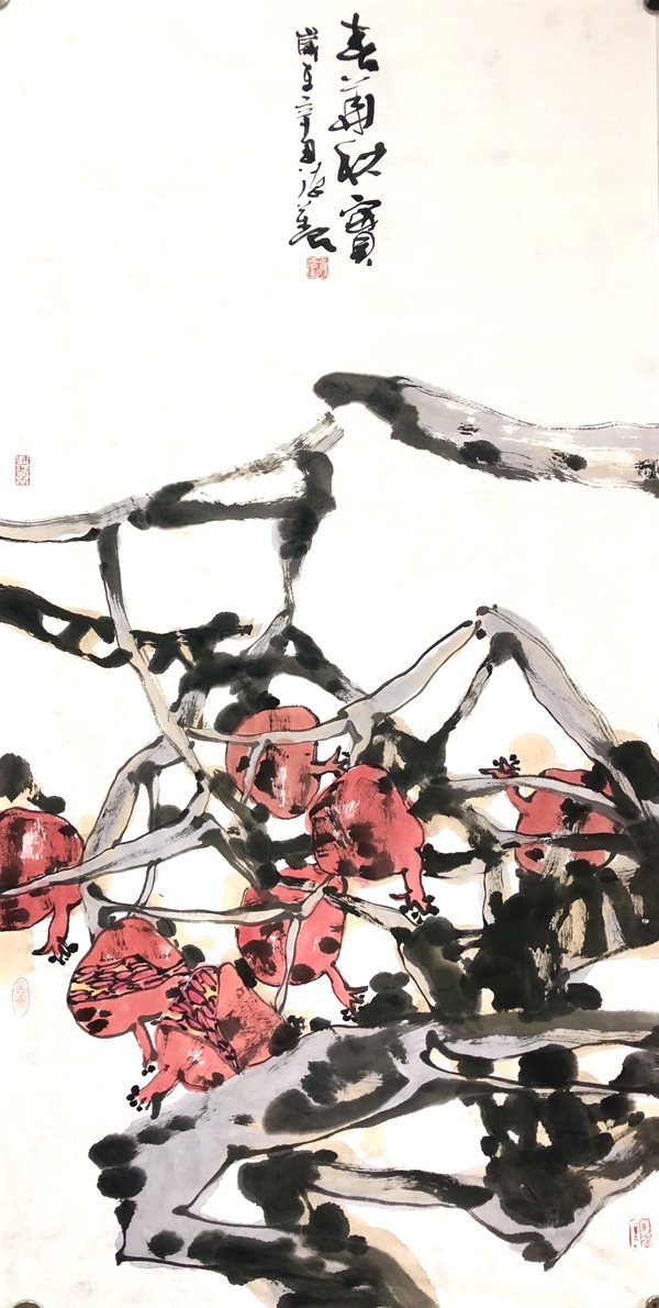 陈琪 秋风摇落石榴红 138×70cm