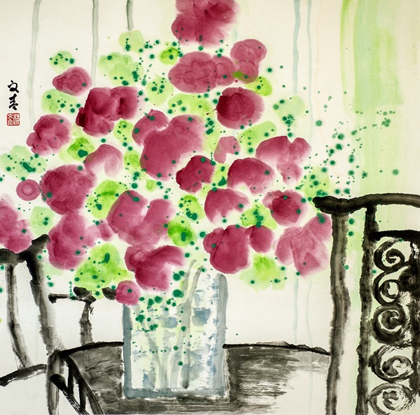 楼文青 瓶花 68×68cm