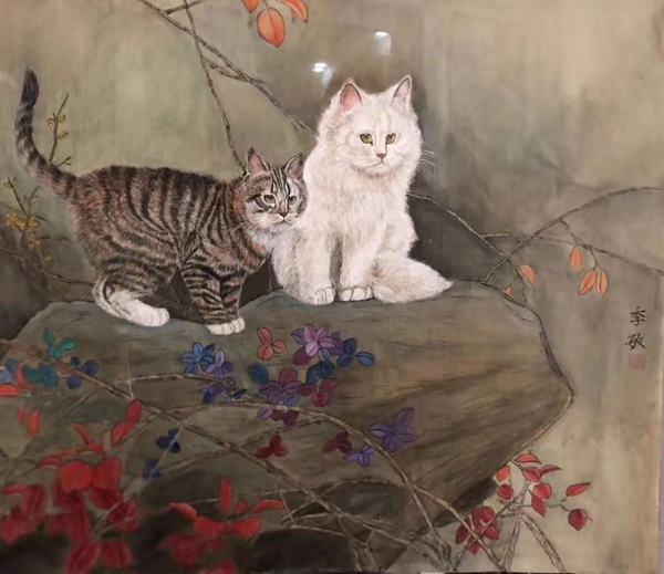 季敏 戏猫图 138x69cm
