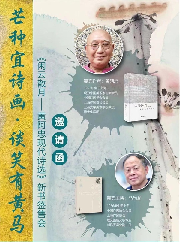 《闲云散月——黄阿忠现代诗选》近期由文汇出版社出版,6月5日下午15:00,将在淮海中路624号上海香港三联书店举办新书签售会,特邀沪上著名作家马尚龙现场对谈。
