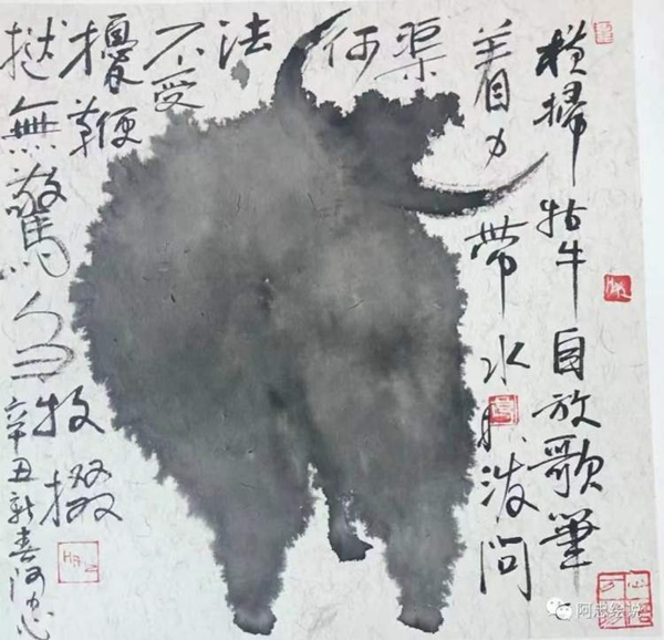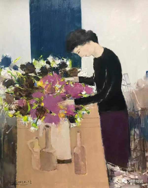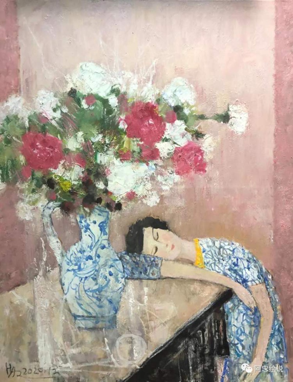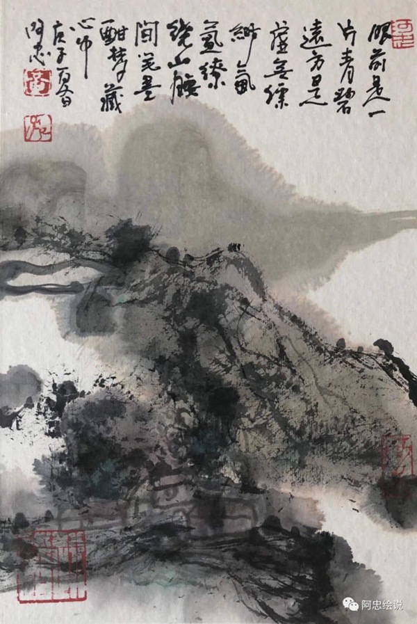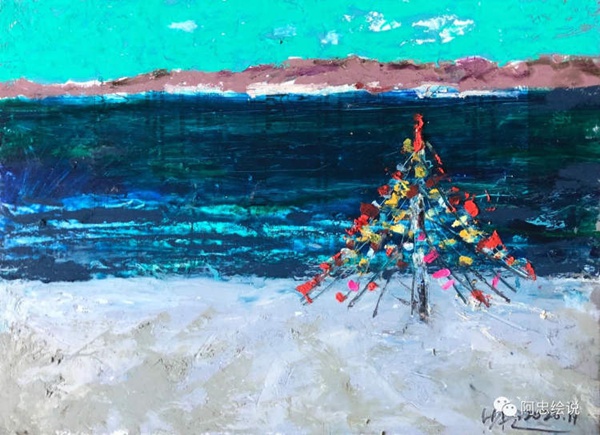 在“阿忠绘说”公众号里,黄阿忠经常把自己的绘画和现代诗一起配发。古代文人最推崇的“诗书画印”四绝全才,在黄阿忠这里,变成了中西艺术文化全面打通的融合型艺术大家。