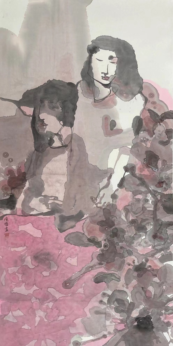 滢公子和晓云娃娃 no.1 纸本水墨 68×136cm