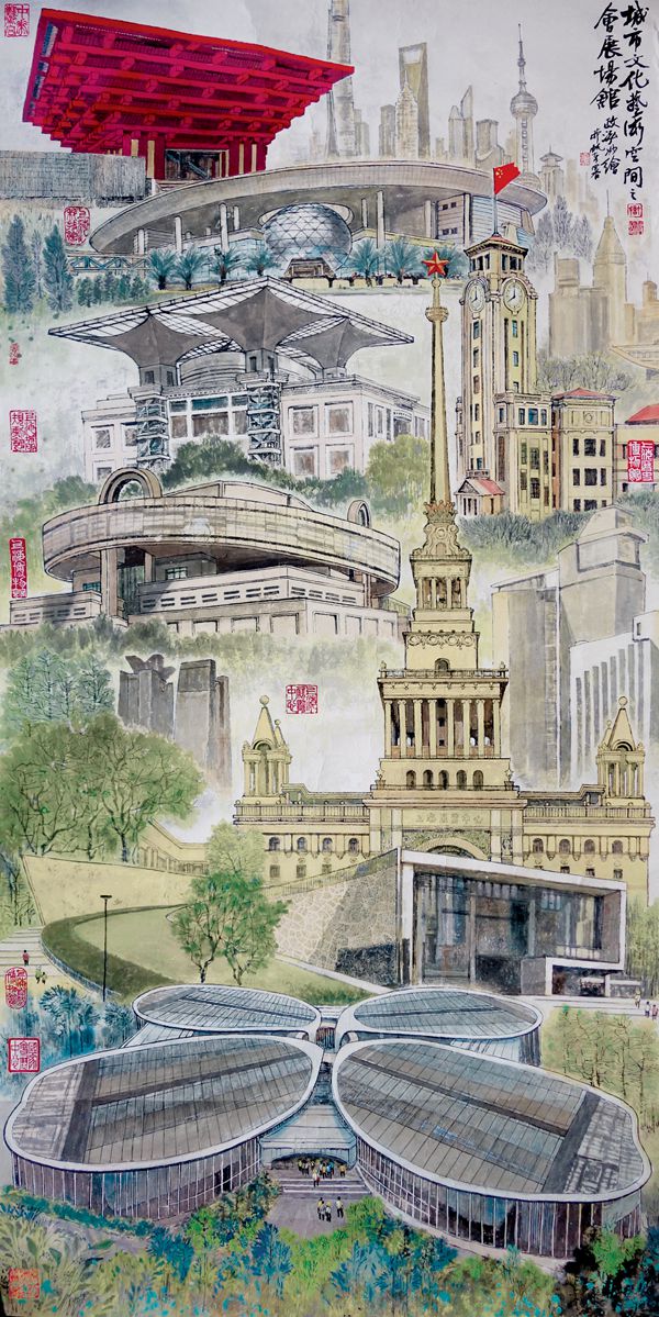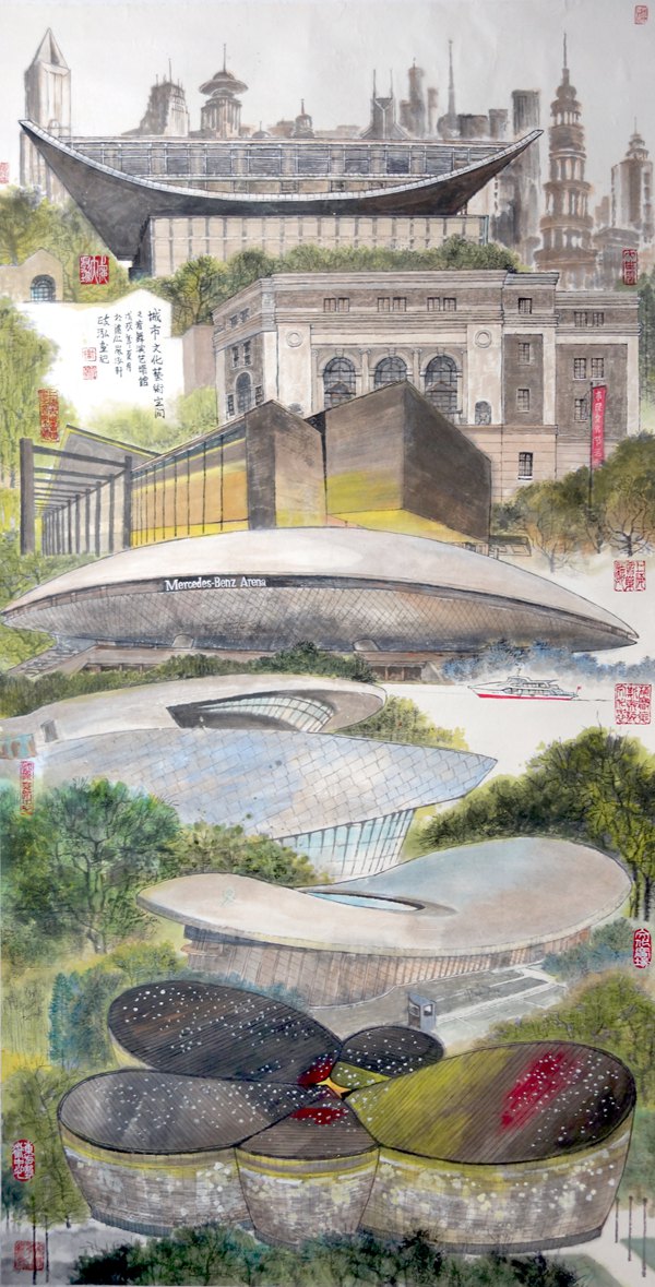 城市文化艺术空间之音舞场馆 中国画 68×136cm