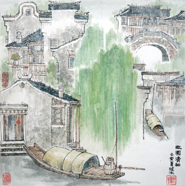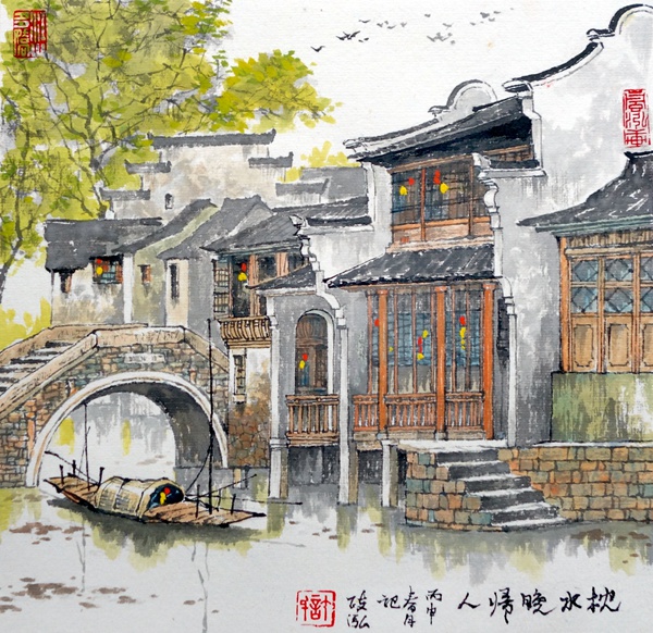 宣纸,水墨和色彩渗晕中的组画《都市风情画》,在传统中国画向现代化迈进的进程中,作了一些探索和尝试,从而想使古老的中国画艺术焕发出灿烂的青春。
