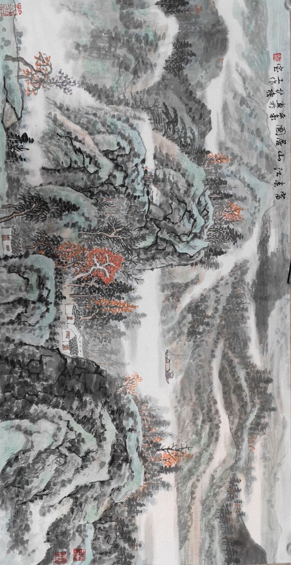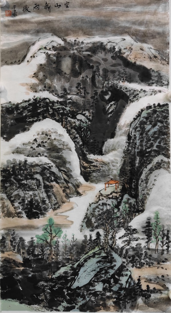平豪的这幅山水画,就是在这点上传承了王蒙山水的理情融合,做活了当代海派山水的新文章。