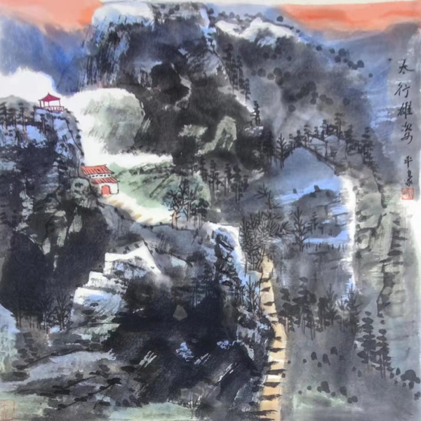 有谁搞国画山水,一上手就是从范宽、王蒙,宋元高古入手的,真为山水画平添了豪气,而国画家平豪就是他的大名,真是天生此材。