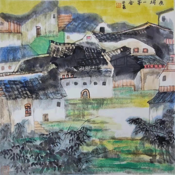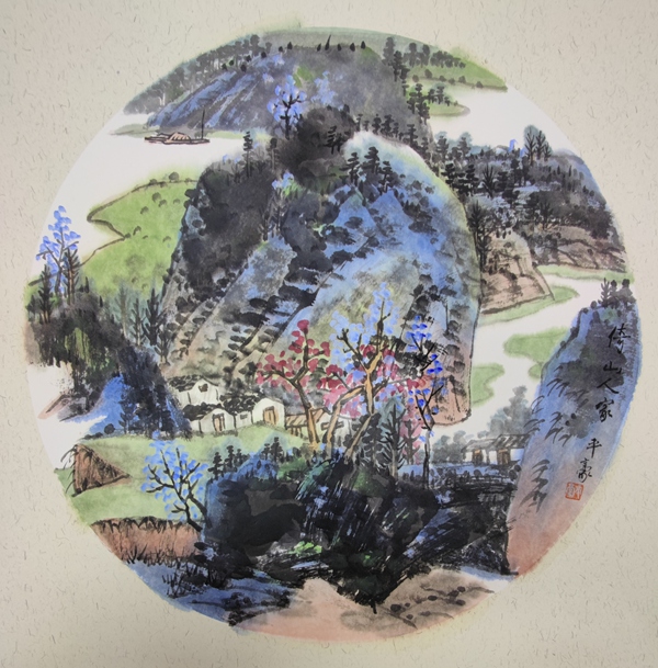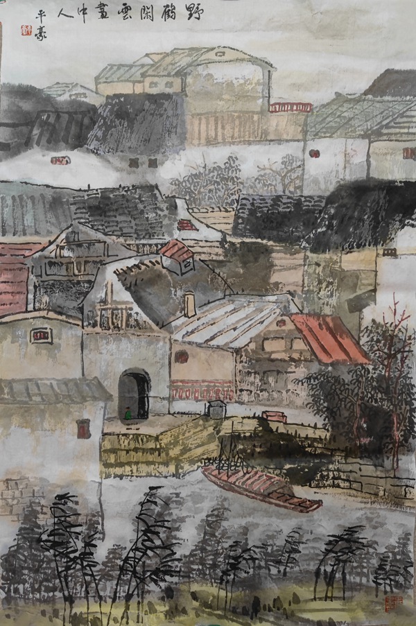 山水画本是往时代中去的,抒情郁郁。平豪画山水又重生活之情,受南方地域影响,平豪画山将王蒙的满山满景和上龚贤郁郁层染的墨韵,沉郁之中山峦青葱,草屋居舍,一方清新,真使山往朗润中去。而深山幽然,层峦叠嶂,画境也在古气之中优哉游哉,如同现代人在美山美水中寻得一方净水净土。所以,山水画的创新,其实还是从传承中获取生活的情趣,这样的出新,也就是我们常说的山水的精气神会使山水郁郁葱葱,更给人一种朝气,平豪的近作追求此境,很生时代之趣的。