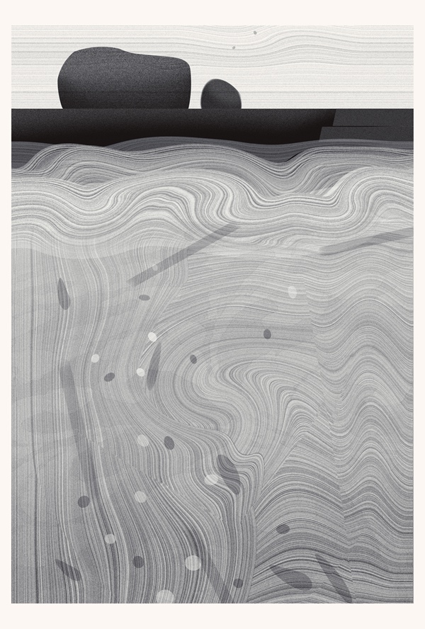 “灰”和“湿润”,是卢兄以画家的敏锐直觉捕捉到的、注解传统水墨画世界的关键词。他在自己的作品中紧追不放这两个着眼点,因此能直取要害、不及其余,虽是全心演绎传统意趣、却能跳出简单描摹表象的窠臼而成新貌。这个直觉,就是个性的体现。而在对版画技艺的运用,对版画语言的创造和开拓上,也同样体现出卢兄的特立独行。无论什么画种,发展既久,就会出现所谓共识里的“典型”样式;版画当然也是如此。而卢兄从最初涉足版画始,就低调地、也是执着地利用版画的可能性来构建自己的审美世界,对“典型”敬而远之;却不意在执着中,创出了新的“典型”。在艺术创造的世界里,往往就缺这种既有足够的自信、又能持之以恒的个性。